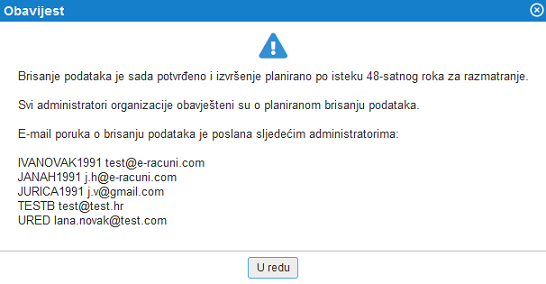 Za potvrdu prijenosa knjiženja iz trenutnog konta na ciljani, kliknemo na gumb U redu.