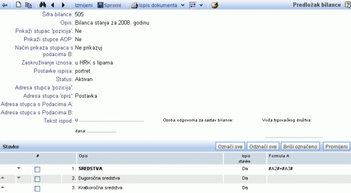 Za izradu drugih bilančnih ispisa (Iskaz poslovnog rezultata, Bilanca stanja,..) pogledajte poglavlje Bilančni izvještaji [8].